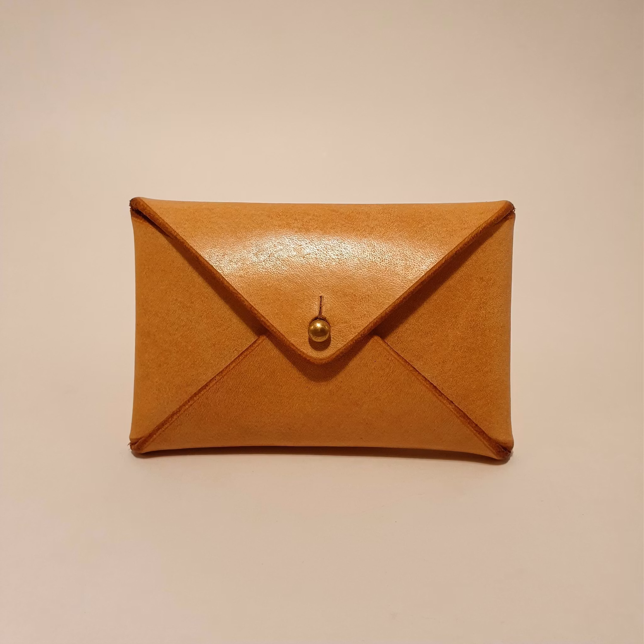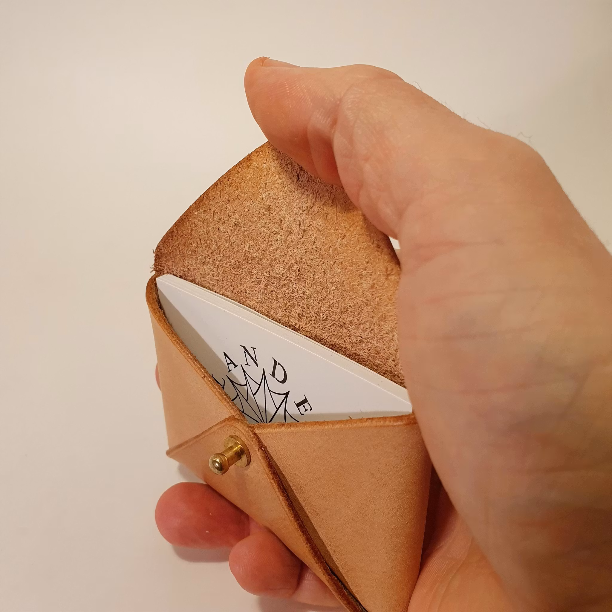 En liten och smidig korthållare i formen av ett kuvert, med gevärsknapp. Rymmer max ca 6-7 kreditkort eller ca 12-14 visitkort av standardstorlek. Till en början kan korthållaren kännas ganska trång då lädret är lite styvare, men ju mer du använder den så blir den mjukare och lädret formas till att passa din användning och som med alla läderprodukter får den även fin patina med tiden.